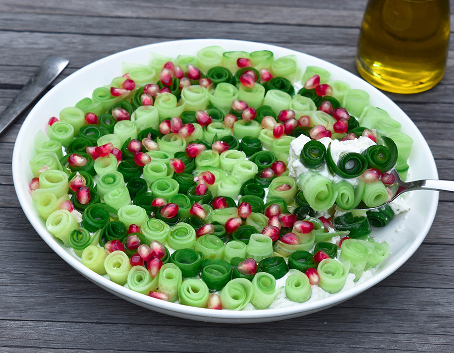 Rolling the cucumber shaves is a work of art!